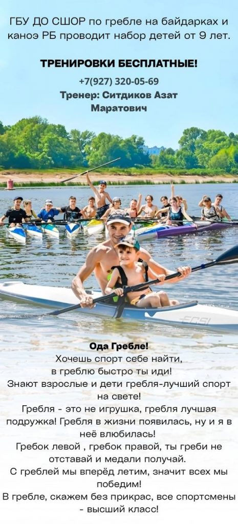 Государственное бюджетное учреждение дополнительного образования Спортивная школа олимпийского резерва по гребле на байдарках и каноэ Республики Башкортостан